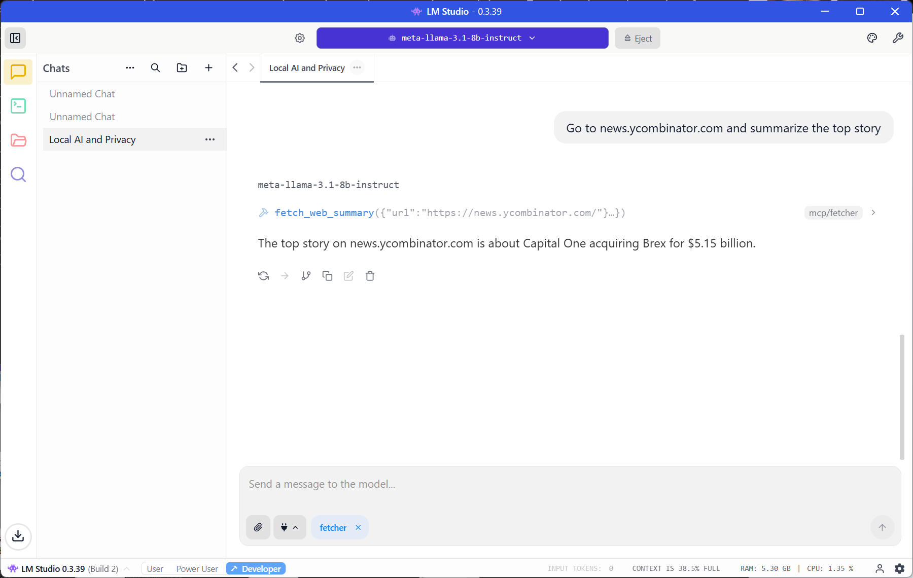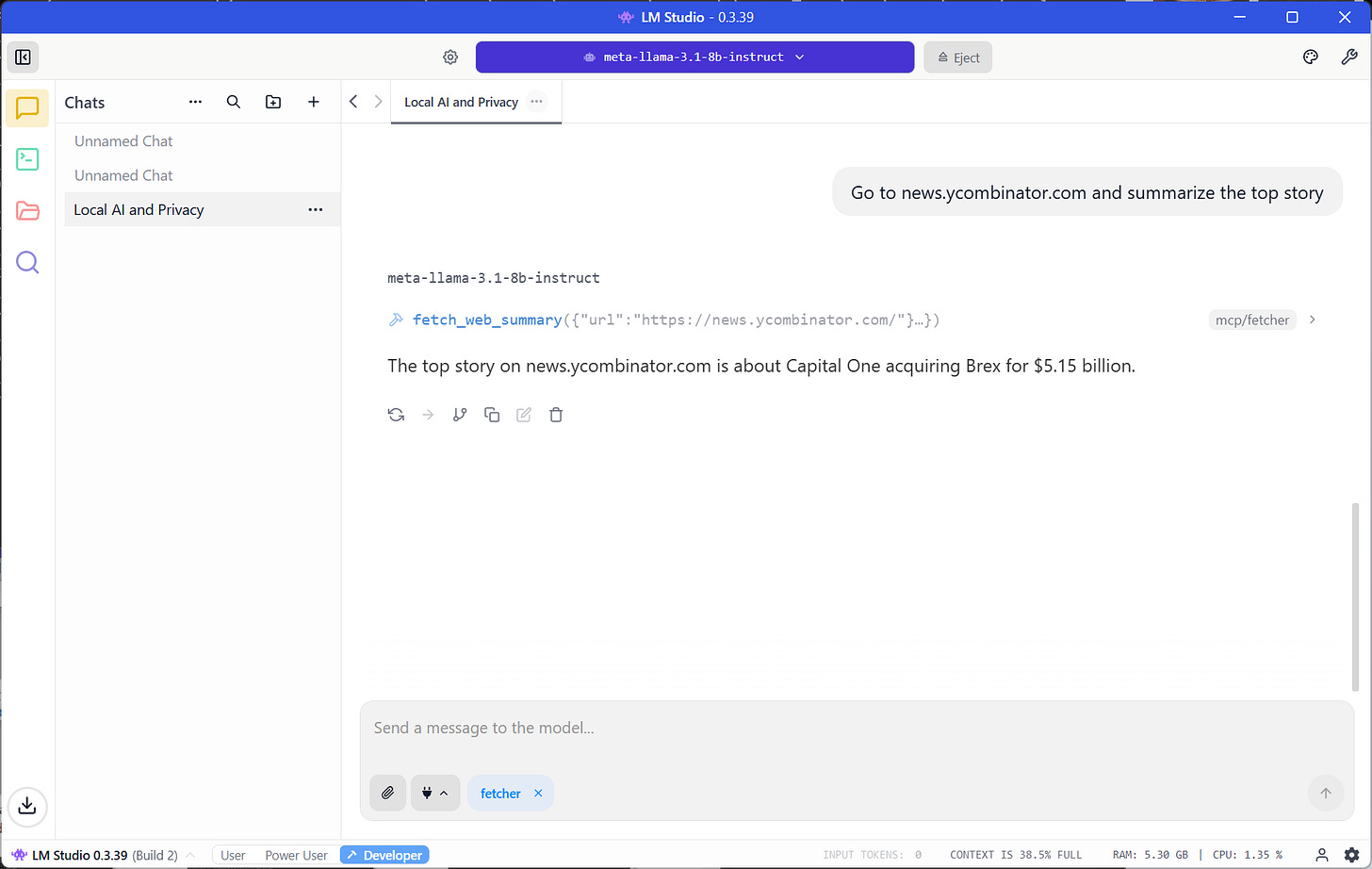 I asked my local Llama 3.1 model to check the top story on Hacker News. It didn’t hallucinate. It didn’t check its training data from 2023.